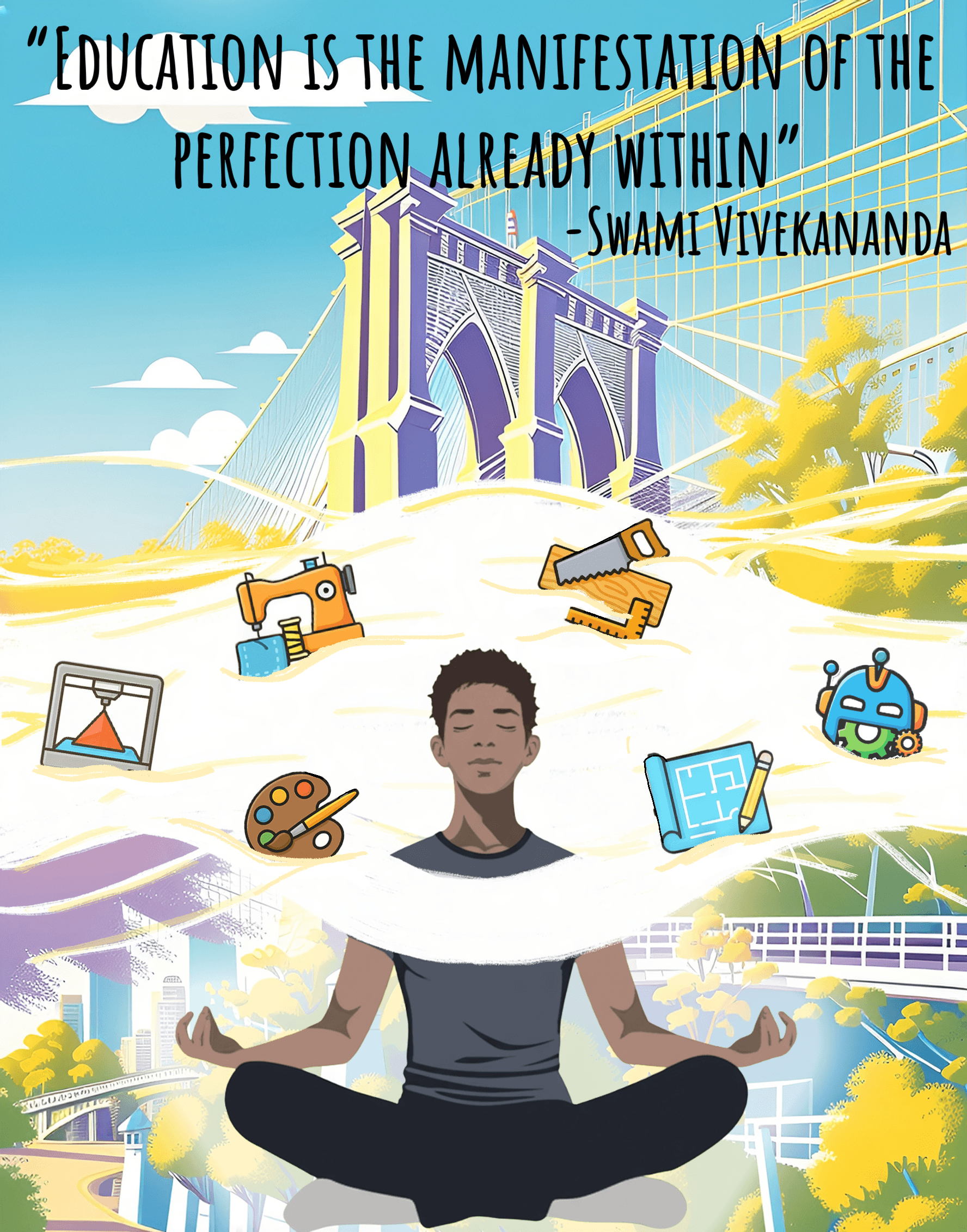 Whether in a lecture hall at IIT Delhi, a makerspace in Brooklyn, or a retreat in the mountains, the mission remains singular: in the most urgent times and crises, to impact learning spaces from the inside out as inspired by ancient wisdom.